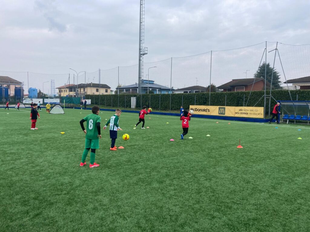 La giornata si è aperta con un’attività mista attraverso la creazione di due sottogruppi per ciascuna società: in una prima metà campo si sono svolte le sessioni di allenamento randomizzato attraverso cinque stazioni di gioco curate dagli staff presenti, mentre nella seconda si sono giocate le partite. Tra un’attività e l’altra si è tenuto il tradizionale momento di confronto con i genitori durante il quale è stato spiegato il progetto Gioventù Grigiorossa all’interno della sede del Palazzo Comunale di Montanaso.